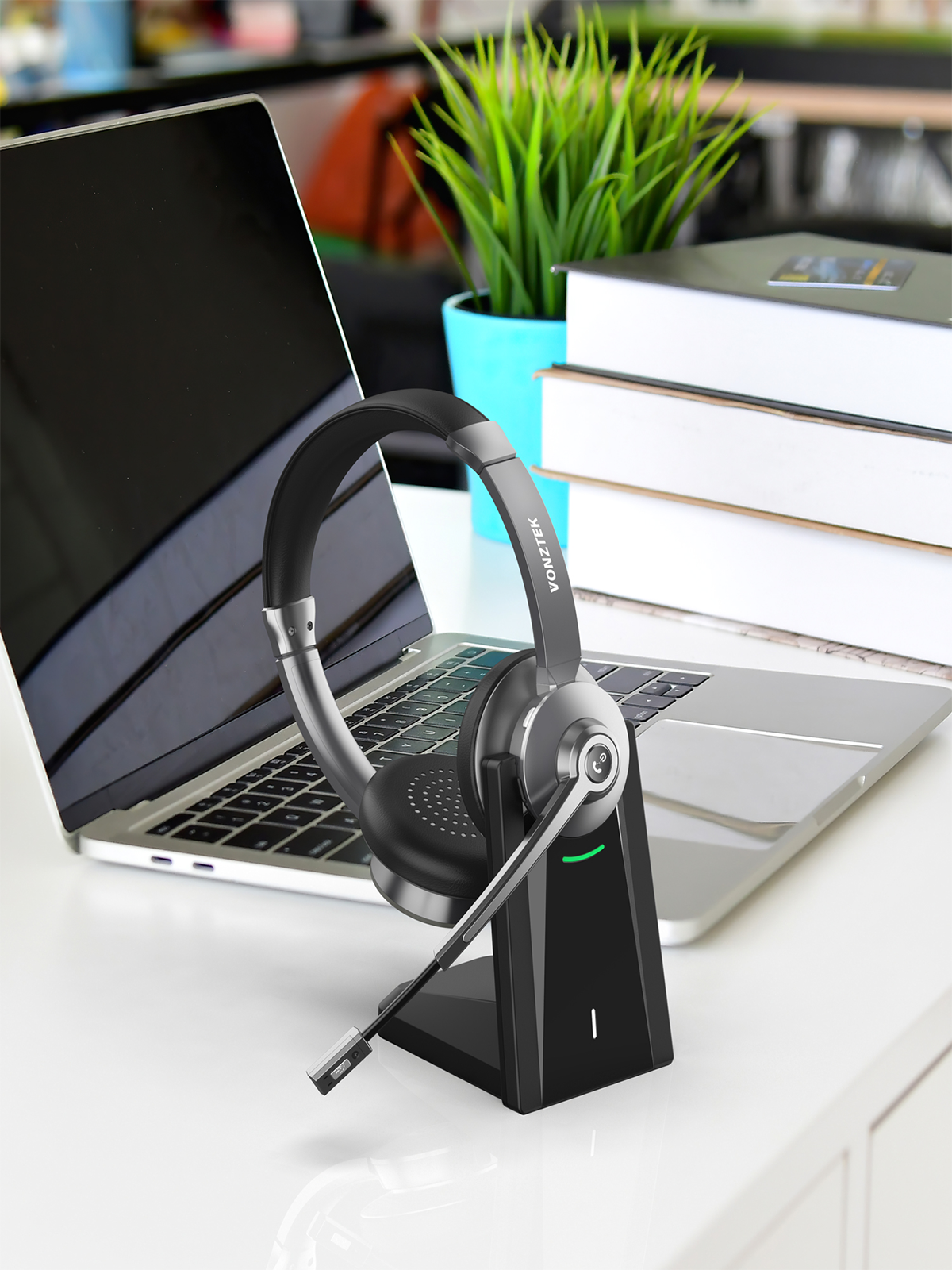 The core concept of Vonztek is to provide a perfect and comfortable headset calling solution for people in the office. In the past few years of continuous innovation and experimentation, we have continuously improved the wearing comfort of the headset and invented the newly researched VonztekPlus technology, which can automatically use AI to The noise reduction function achieves 99.6% headphone noise reduction.