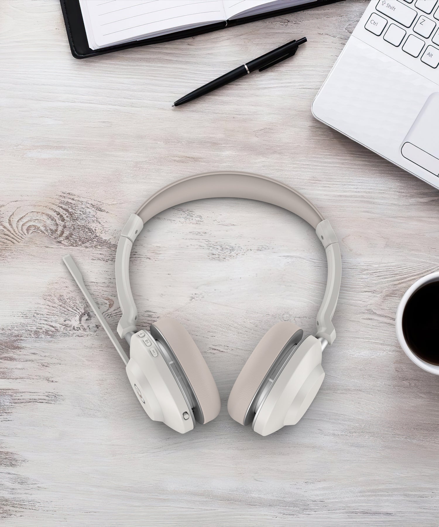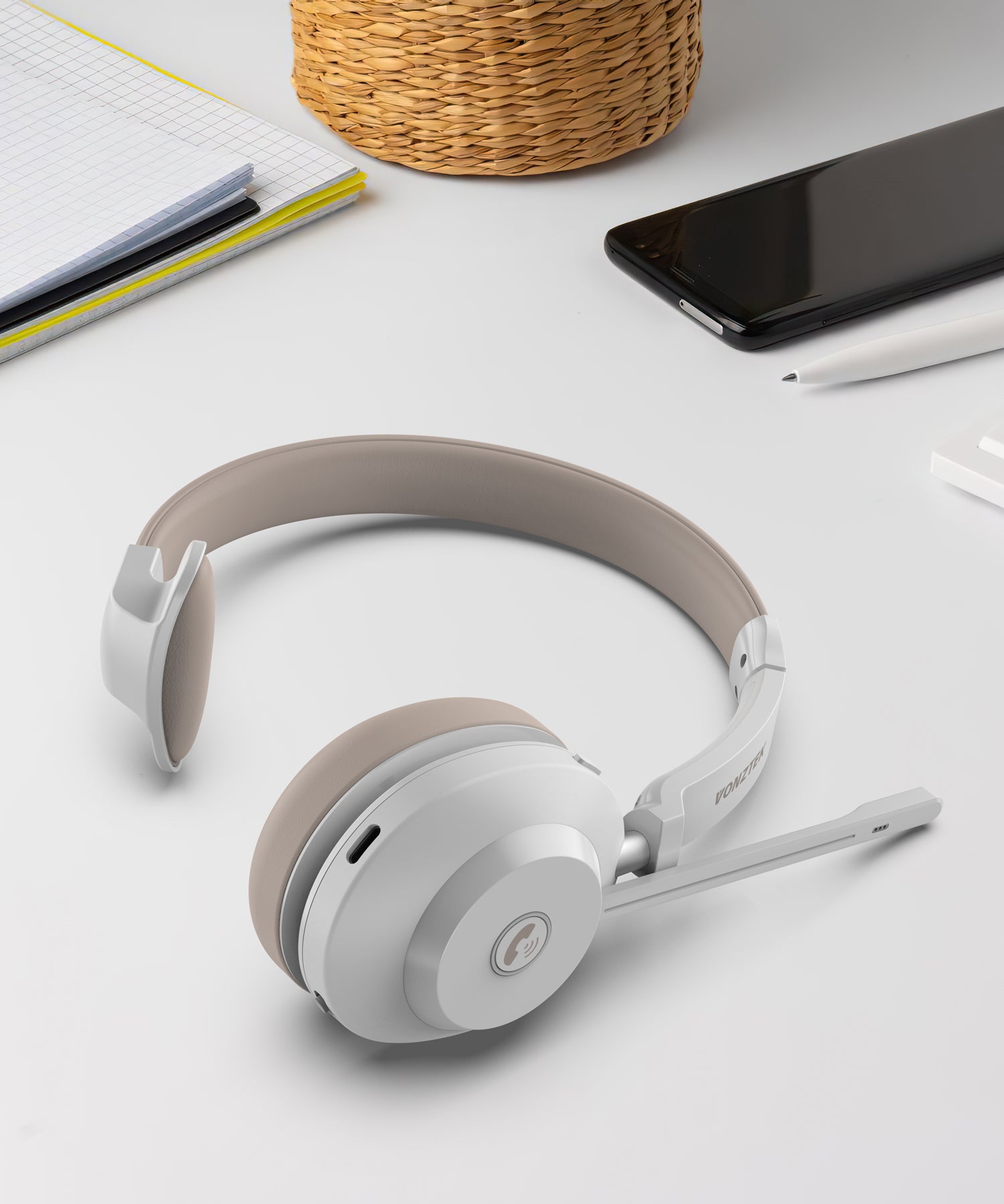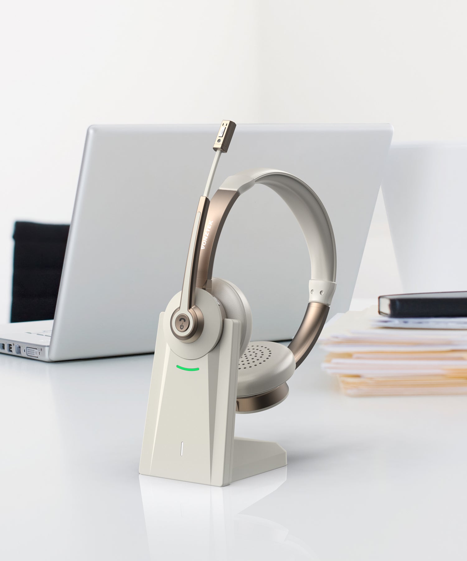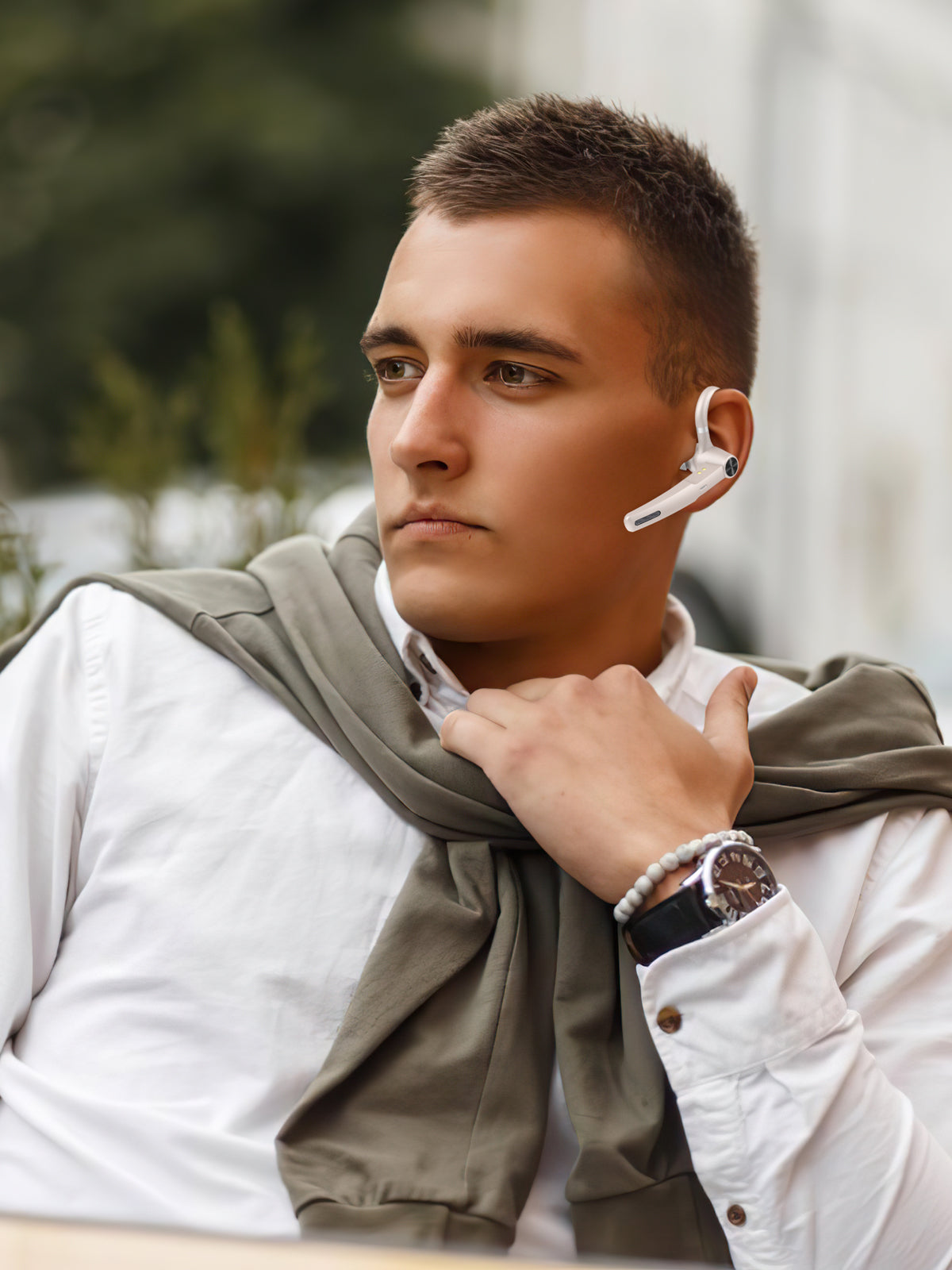 The unique light brown color of headset with mic is designed to fit in left/right side and different ear sizes, Its flexible rotatable ear hook and boom mic can be rotated to ideal position. Single headphones with microphone weighs only 15.8g, no more stress from ears even wearing for hours.