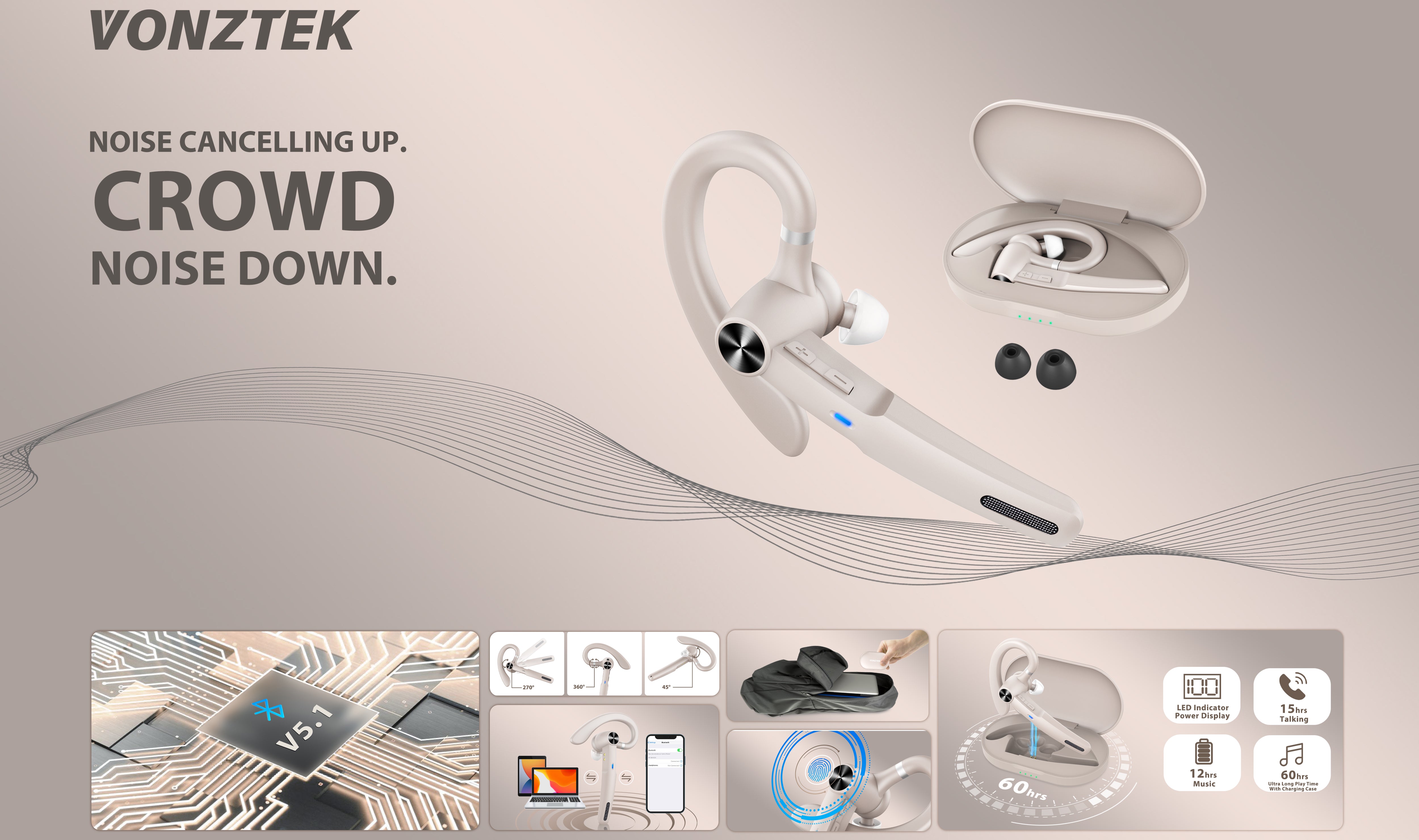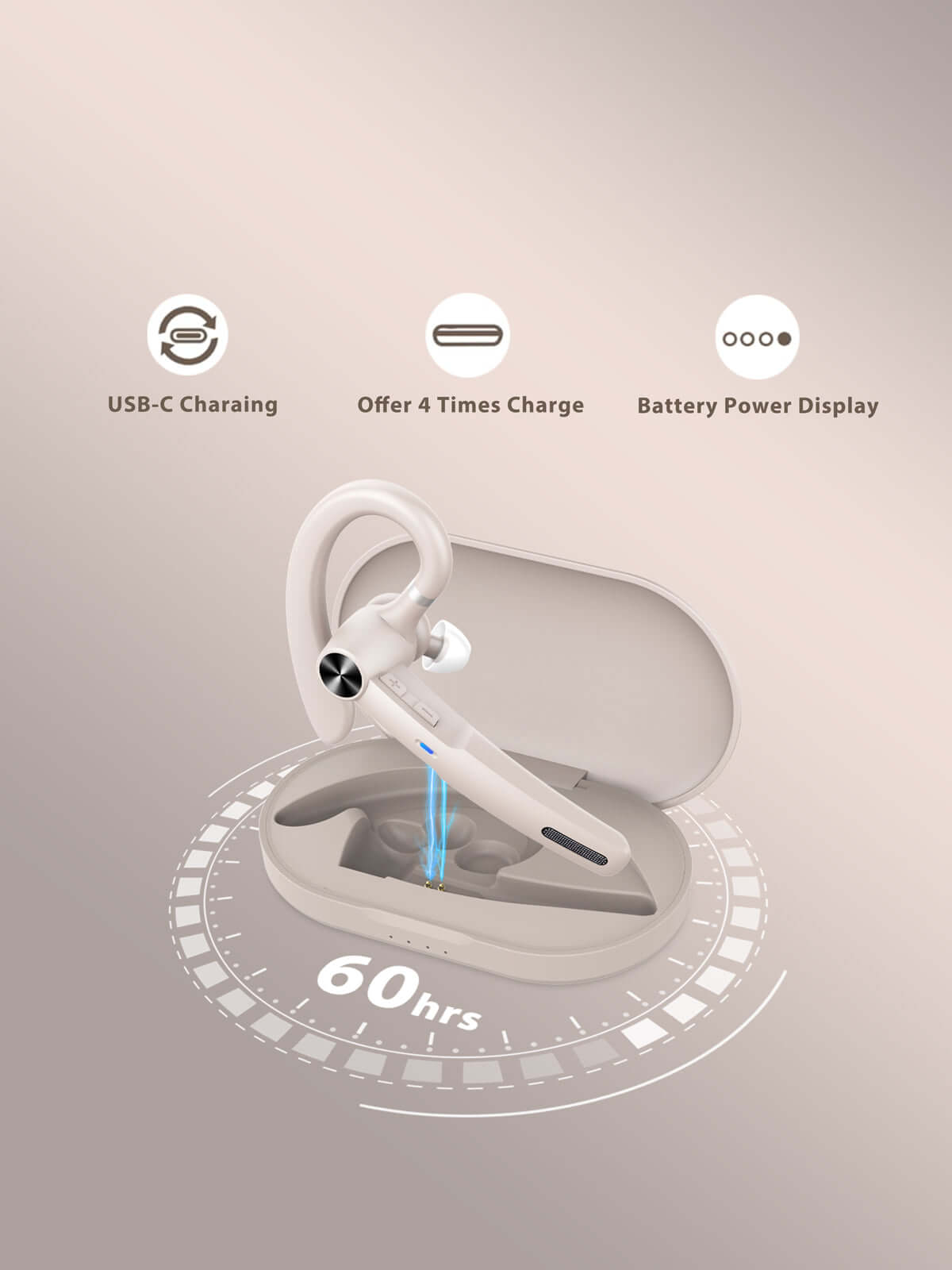 Only weighs 100g/3.5oz with charging case, you can take this bluetooth headset with microphone to everywhere, which is durable and comfortable enough to be worn for hours and taken to your business trip.