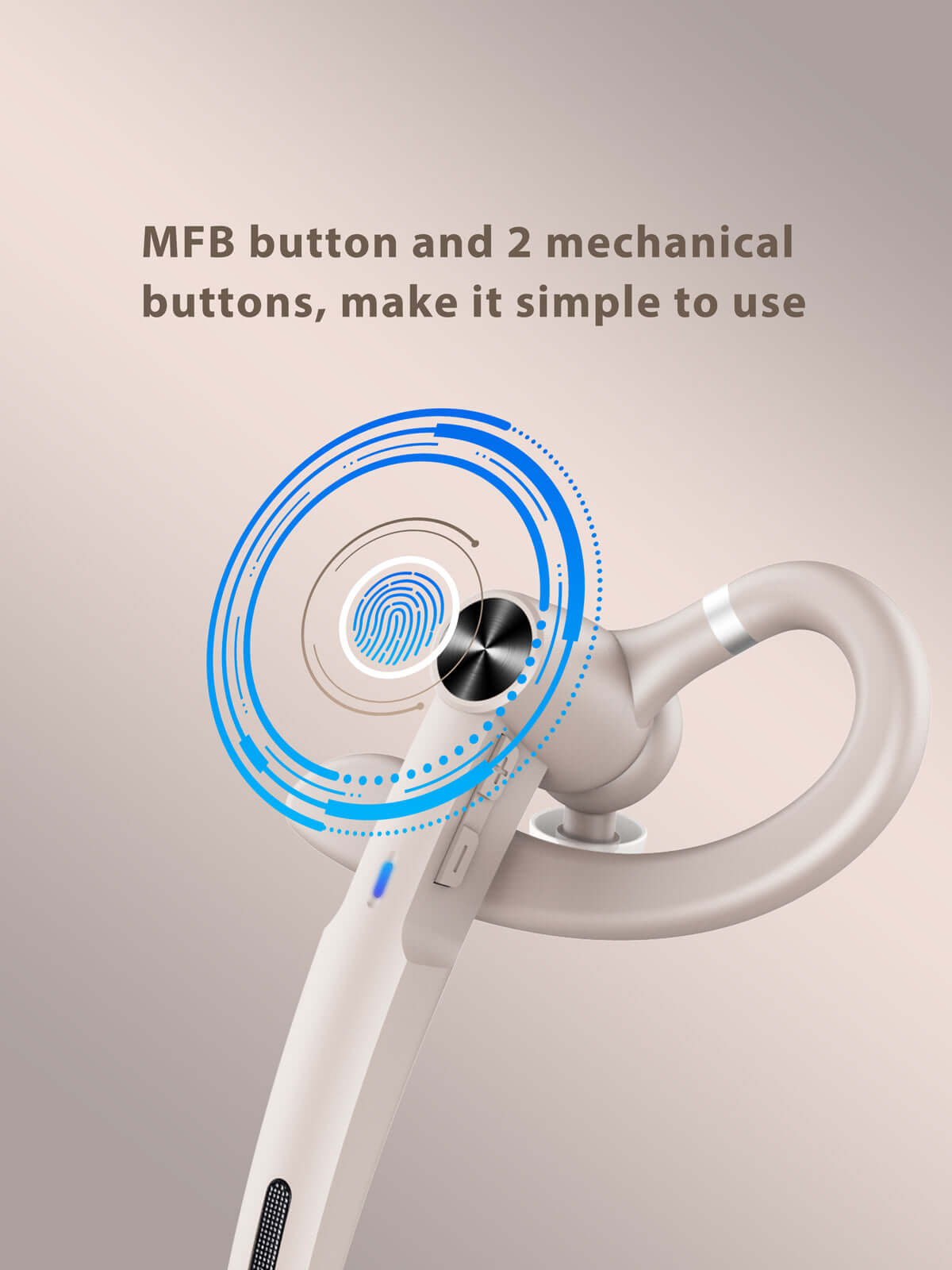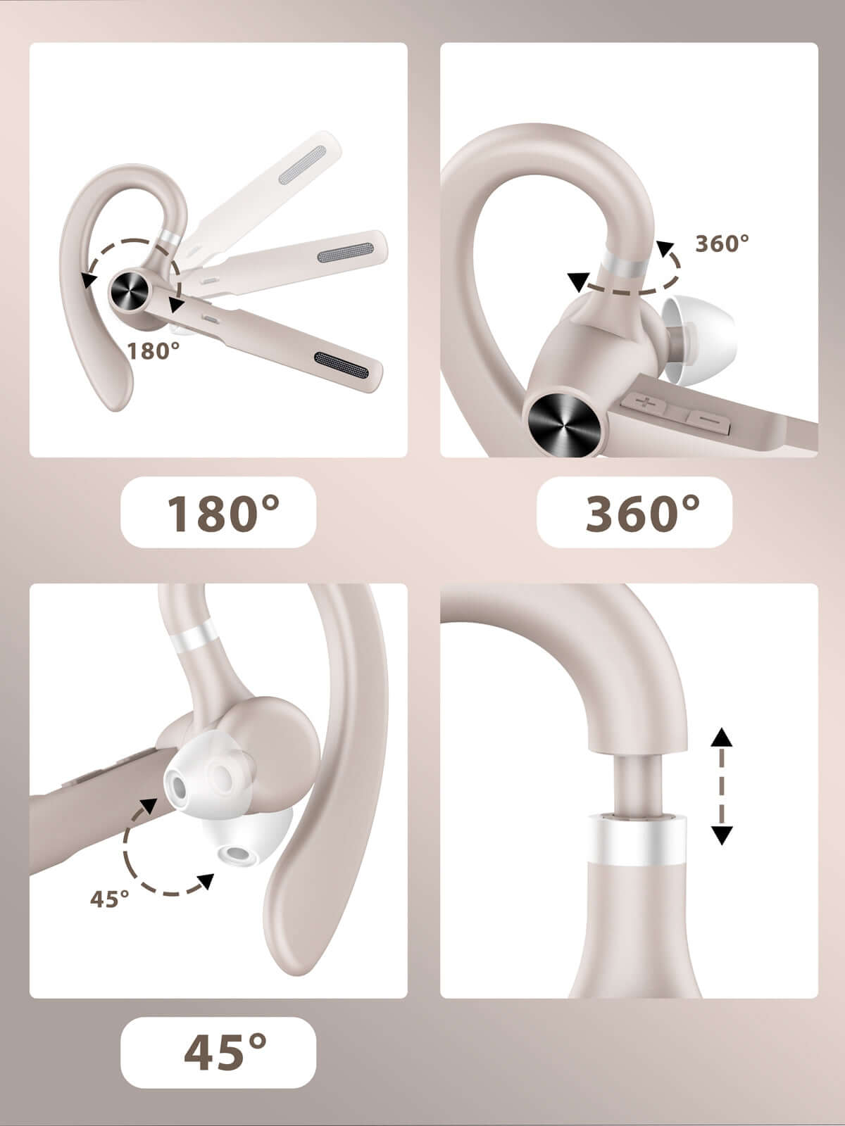 Designed to fit either ear, the in-ear design features 360° adjustable ear hooks and a 180° flip arm swivel for a comfortable fit that won't drops down when you're wearing the headphones.
