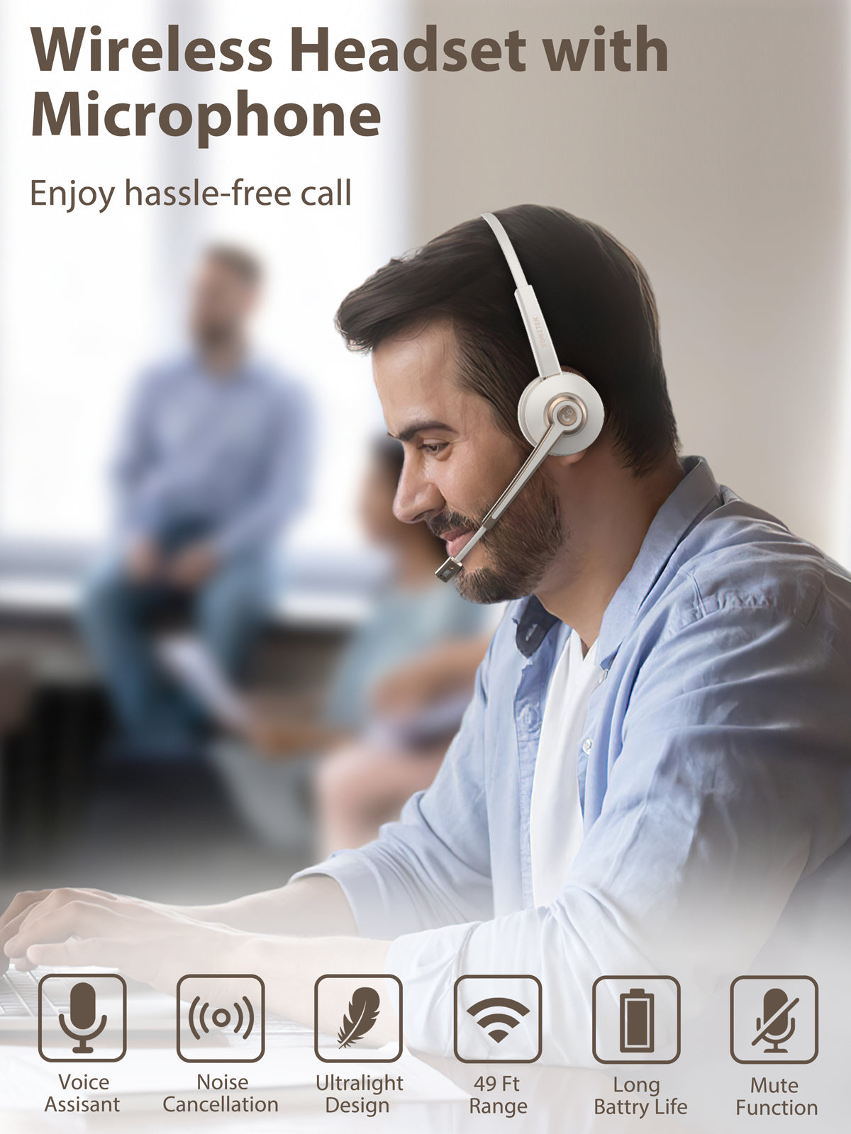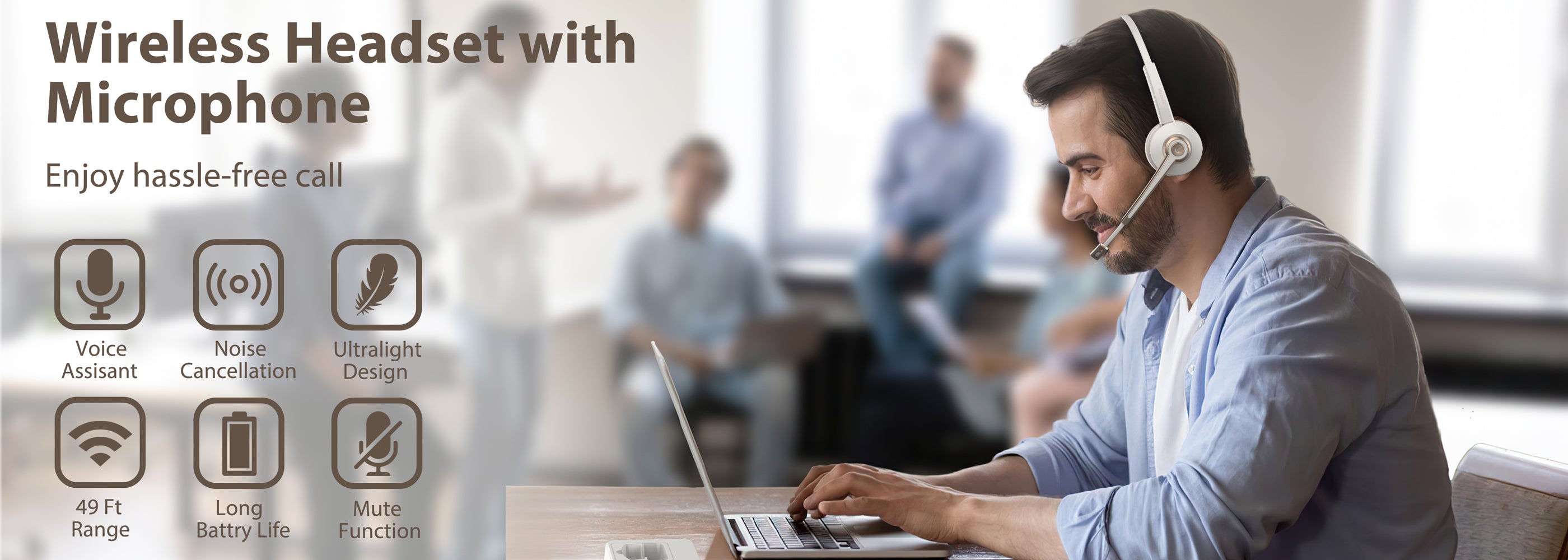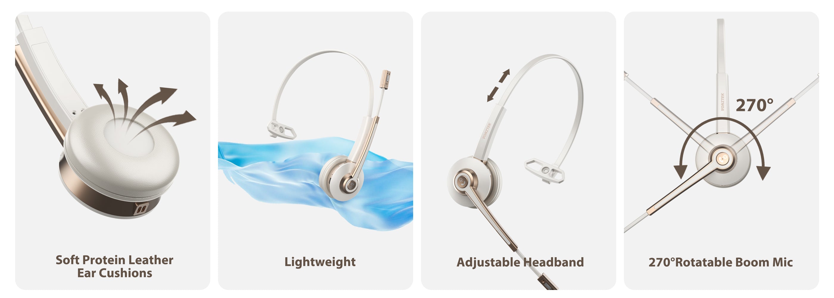 Vonztek headsets with microphone wireless with 270° microphone is built for your all-day wearing comfort. It features soft ear cushions and adjustable headband, which enable you to adjust to perfect wearing angle.