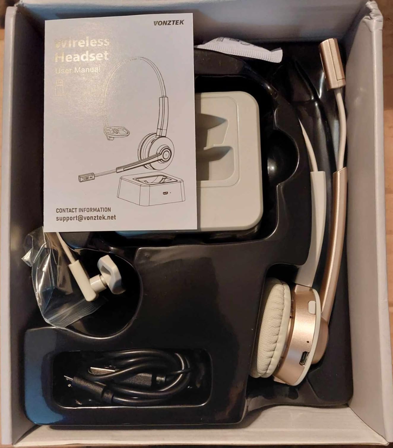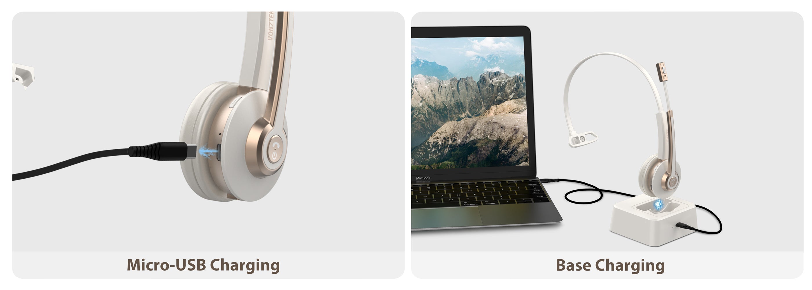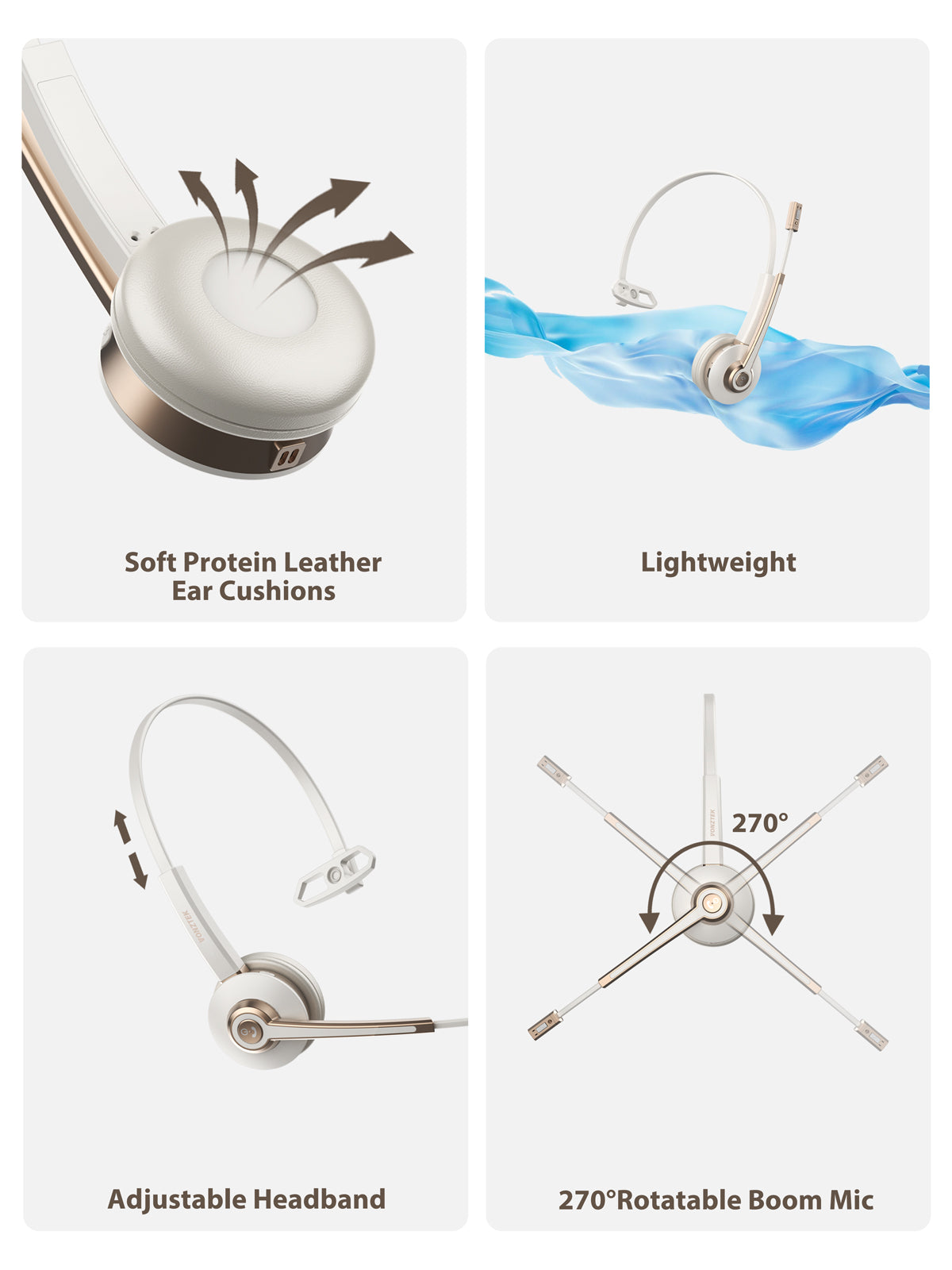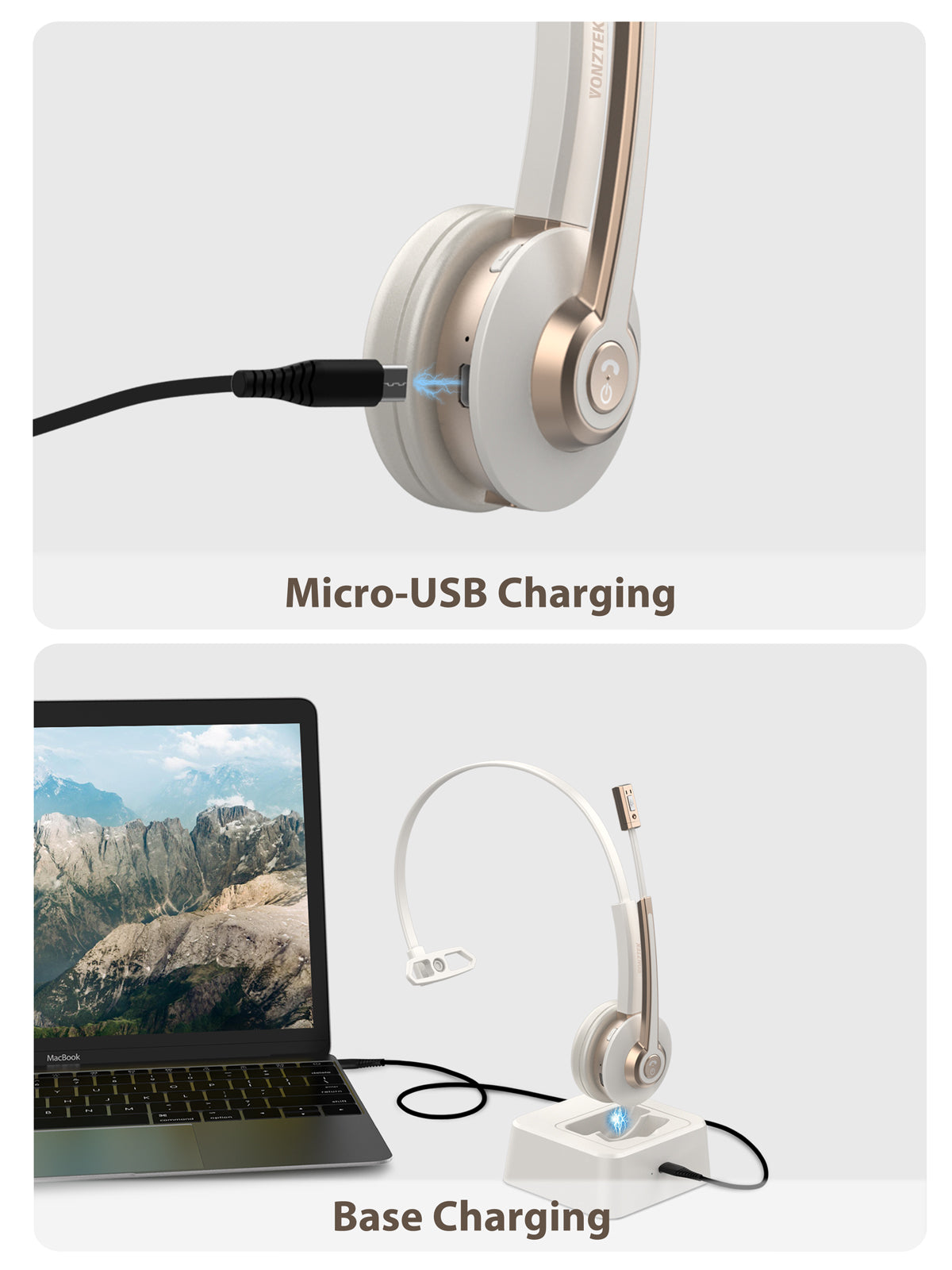 Vonztek headsets with microphone wireless with 270° microphone is built for your all-day wearing comfort. It features soft ear cushions and adjustable headband, which enable you to adjust to perfect wearing angle.