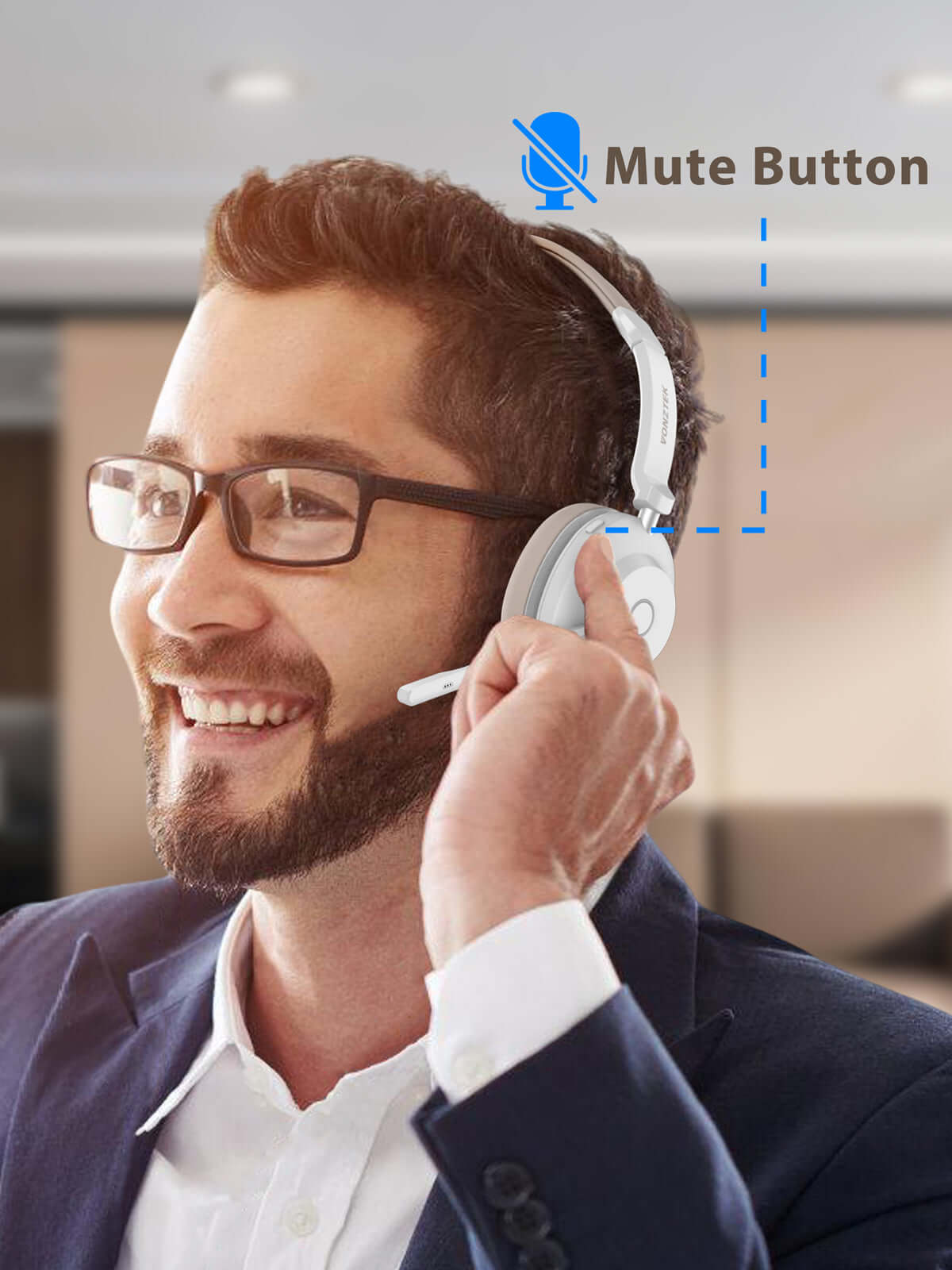 The mute button on the side of the wireless headphones with microphone can easily mute/unmute microphone during the call, which will not let you press mistakenly and avoid embarrassment.