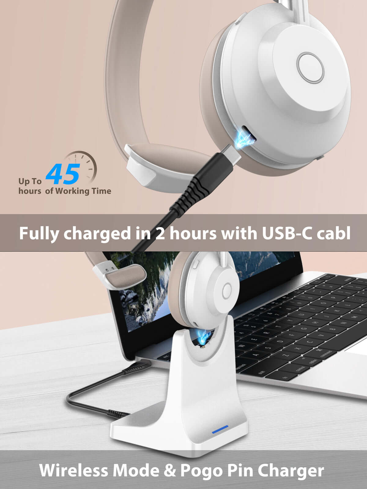 This wireless office headset is for work and has Amazing battery life that keeps you working without interruption, 3.5 hours after charging for half an hour.