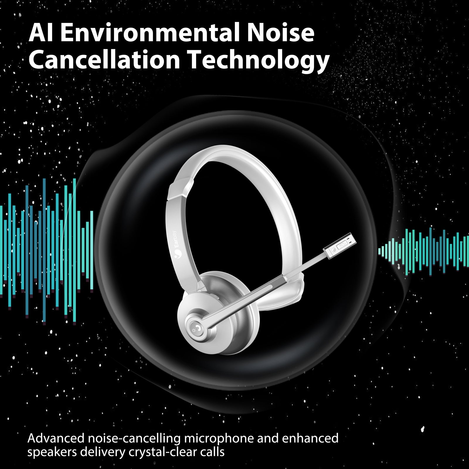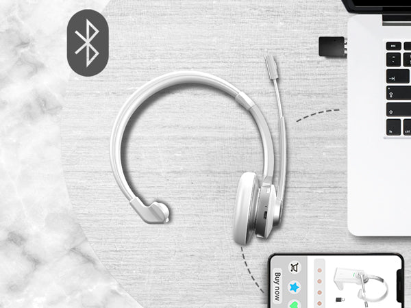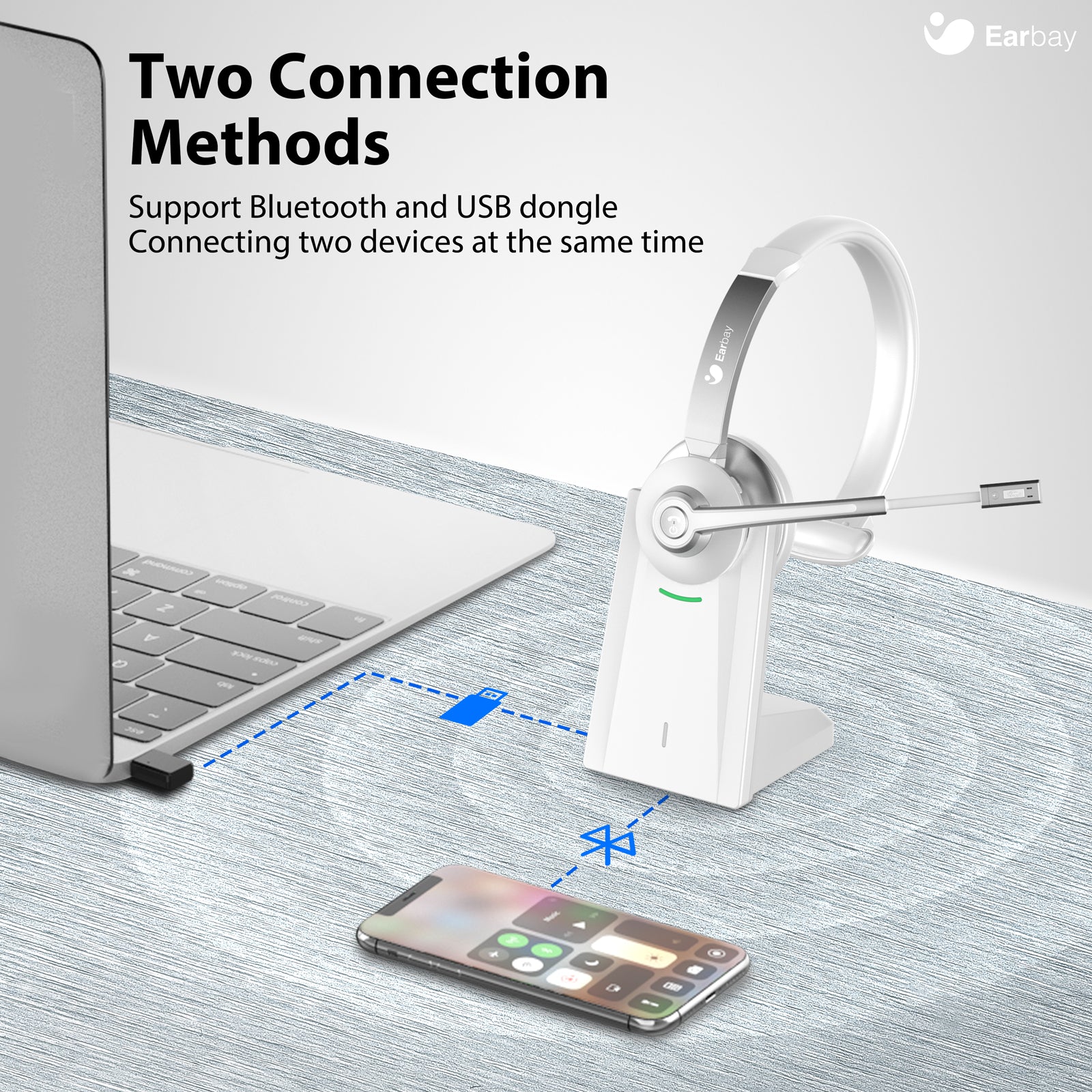 Earbay White Trucker Bluetooth Headset with Microphone, USB Dongle & Charging Base BT783MB-CD