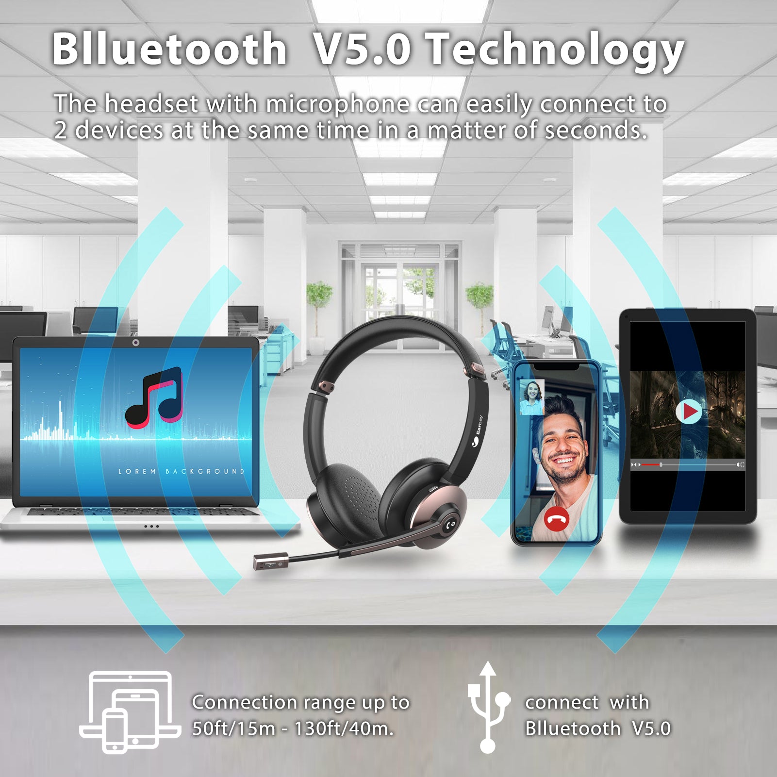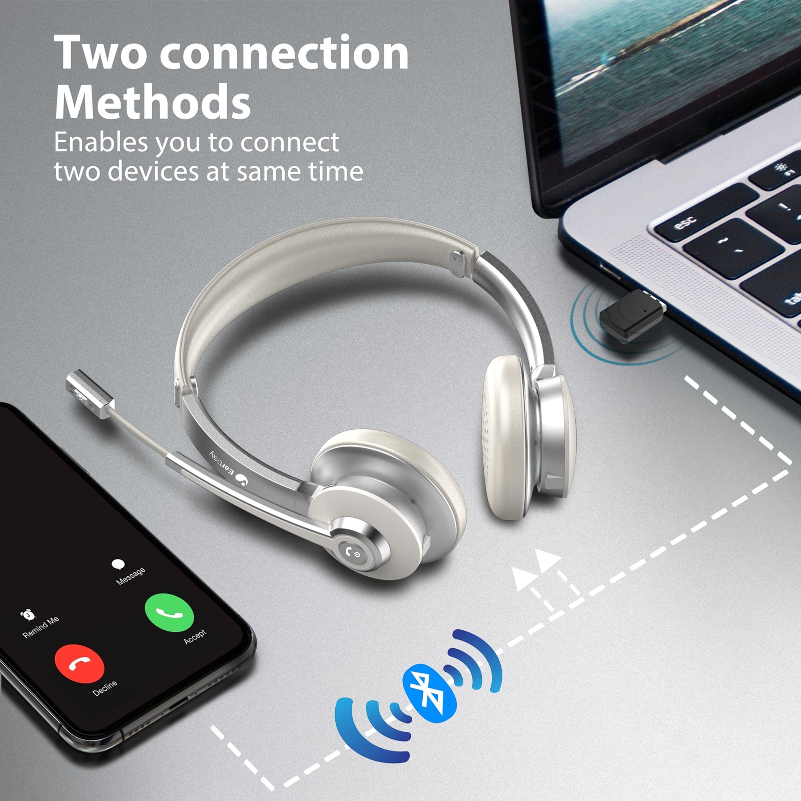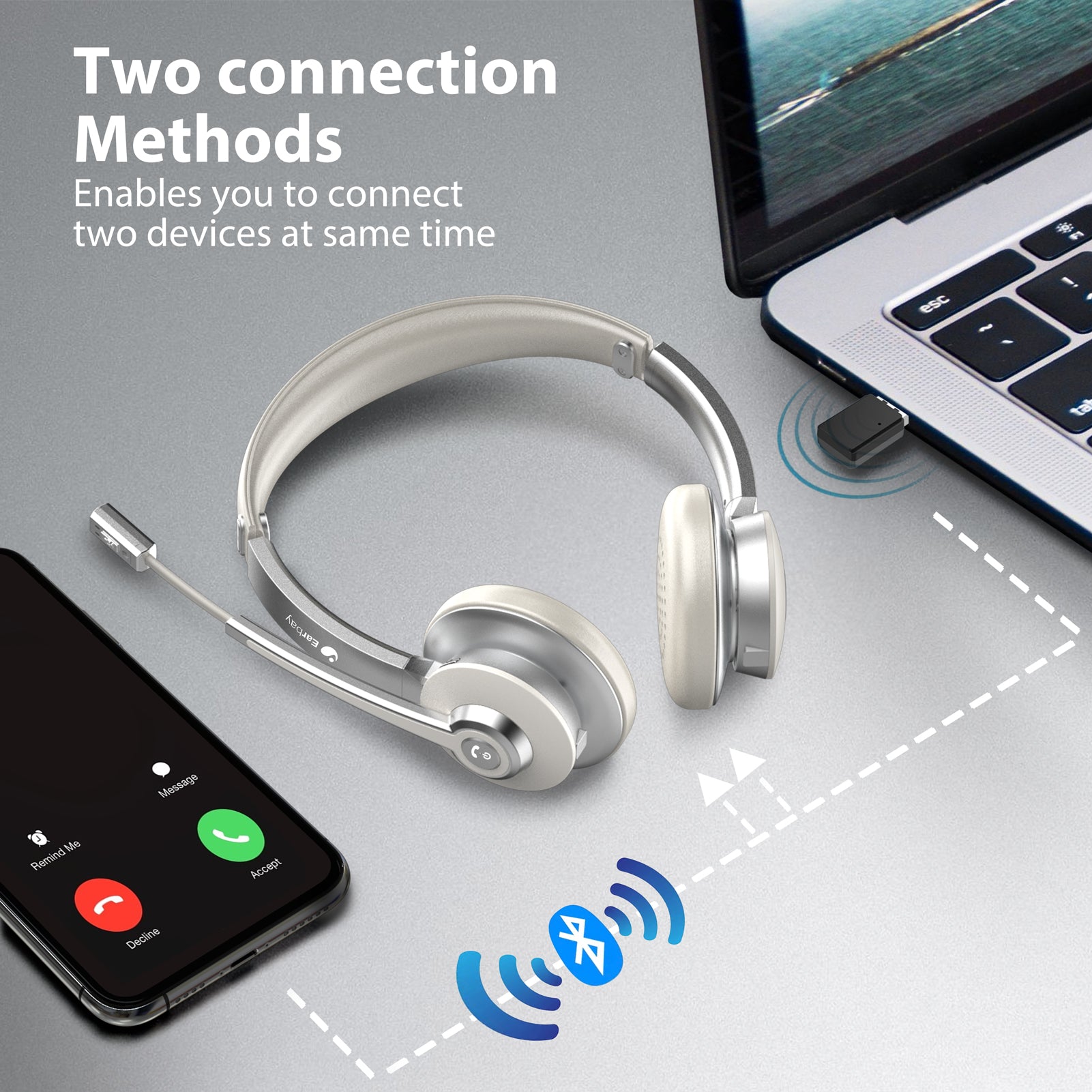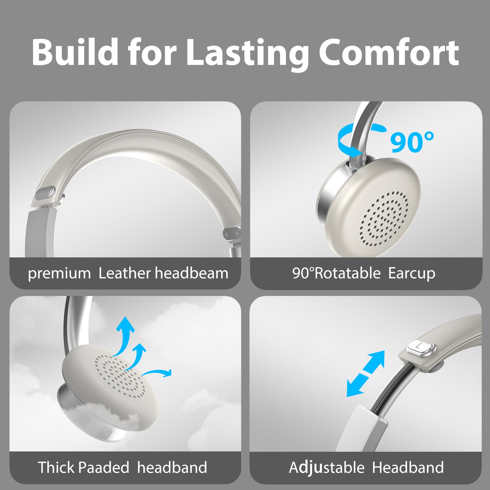 Featured with Leatherette memory foam cushions, An ergonomic adjustable headband of this headset fits different types of head, All brought together by a lightweight frame. These bluetooth headsets give you breathable comfort that lets you wear all day.