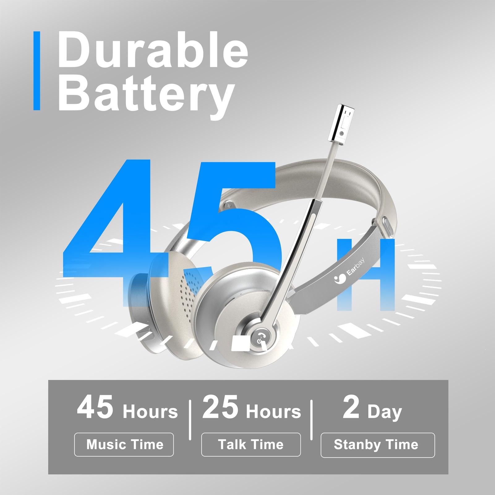 Earbay bluetooth headset with microphone adopts outstanding nosie cancelling mic and sound card, let you stay in immersive clear calling and hearing experience. You can use mic mute button when you making calls to protect your privacy, Red light on means mute function works.