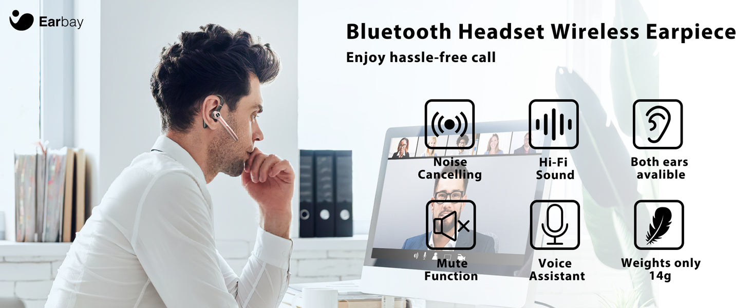 - ăComfortable Fit Designă Earbay bluetooth headset for truck driver have a streamlined design that fits comfortably in both left and right ears. These bluetooth earpiece for android weigh only 0.5 ounces (14 grams).