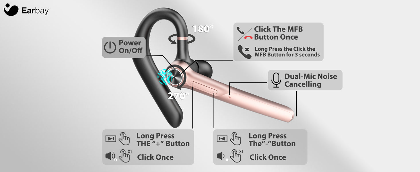Earbay Bluetooth earpiece provides a stable and smooth calling experience.