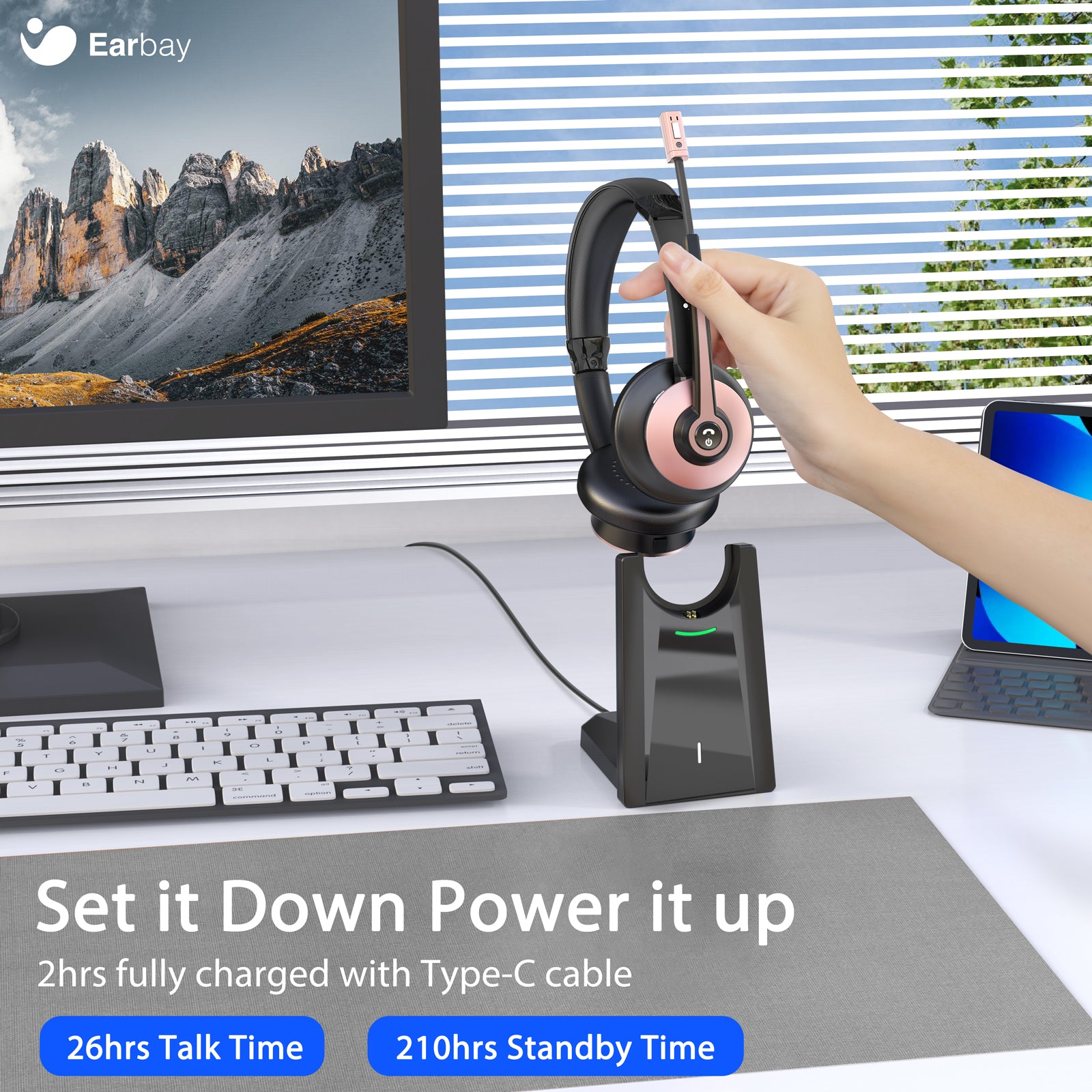 Earbay Rose Gold Bluetooth Headset with Microphone, USB Dongle Charging Dock BT786-CD