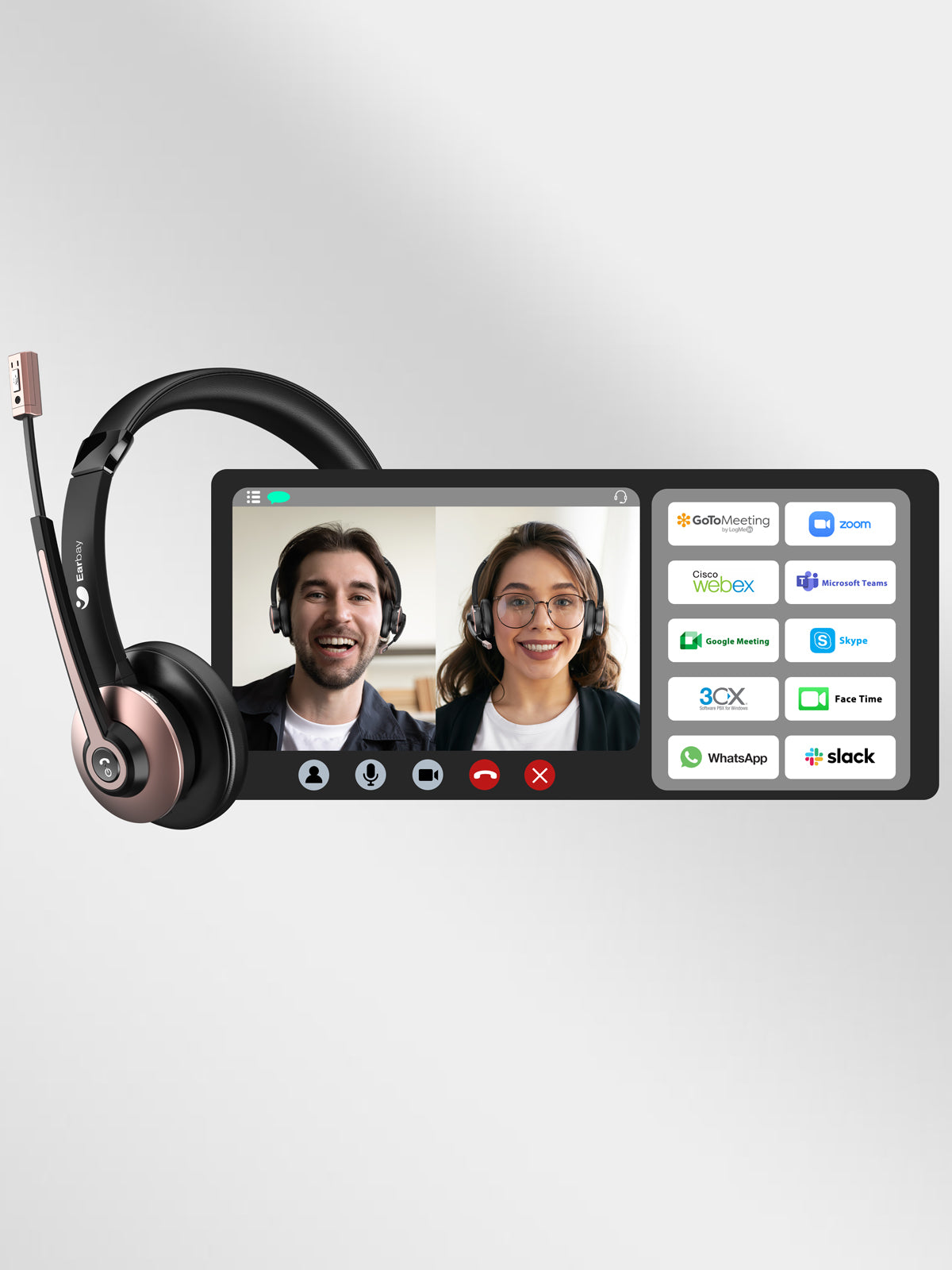 Earbay office headset works with most cell phones, computers, and most voip applications.